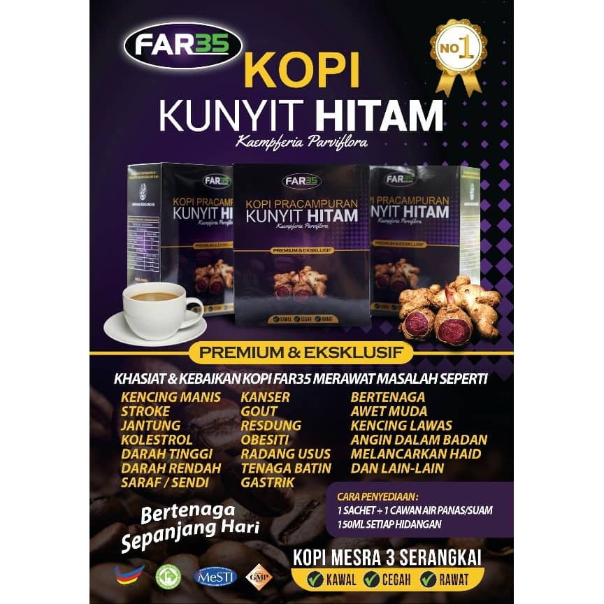 Kunyit hitam official kapsul kunyit hitam far35 original . You can try to dialing this number: Far35 kopi kunyit hitam kopi mesra 3 serangkai. Banyak khasiat kunyit hitam yang tidak diketahui umum, tidak hairanlah ia banyak digunakan dalam perubatan tradisional dimana didakwa terdapat 30 komponen. Azlee senario pun minum kopi kunyit hitam far35. Kopi kunyit hitam khasiat untuk kesihatan 20 sachet shopee .